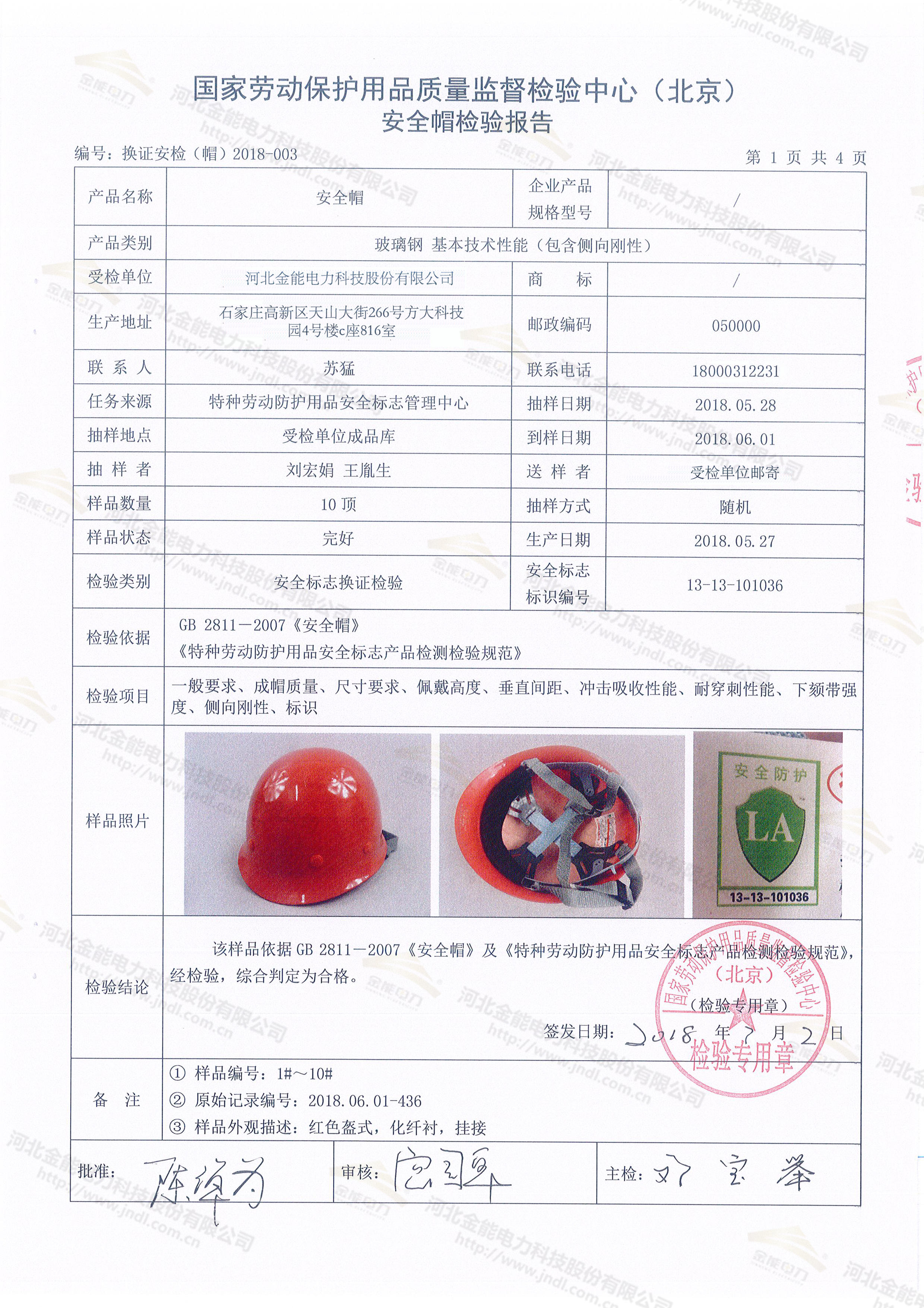 玻璃鋼安全帽檢測報告