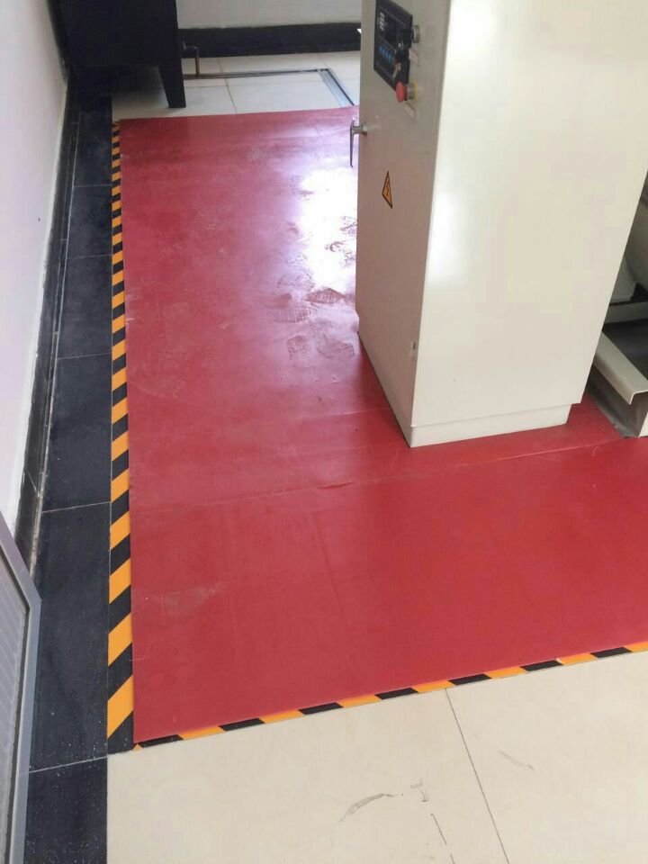 3、黑色絕緣膠墊普通地板磚地面,可以通過黃黑絕緣膠帶(絕緣漆)或反光膠帶進行固定,看起來層次分明,整體風格有很大的提升,如下圖: