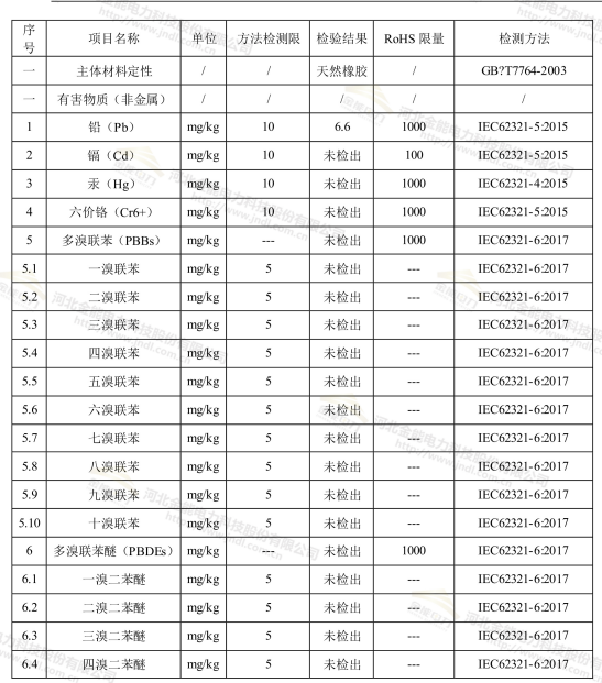 以上就是絕緣橡膠板成份檢測的事項(xiàng)了,通過檢測報(bào)表可以看出金能絕緣膠墊主材料為原生橡膠材質(zhì),鎘、汞、六價(jià)鉻、溴聯(lián)苯、多溴聯(lián)苯醚、溴二苯醚等有害物質(zhì)均沒有檢測出,證明金能電力絕緣膠墊是由原生橡膠制作,不含有害物質(zhì)的產(chǎn)品,是環(huán)保、質(zhì)量為一體的高質(zhì)量產(chǎn)品!