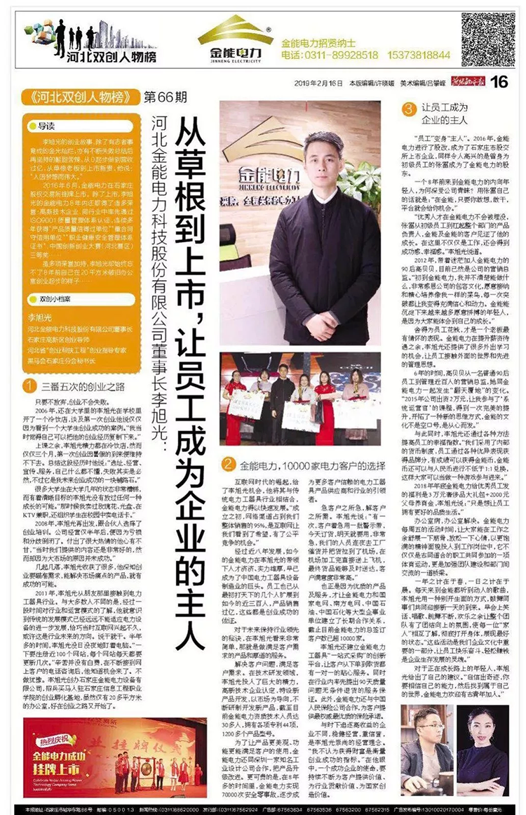 燕趙都市報作為河北省最權(quán)威的主流媒體給與金能電力創(chuàng)始人和金能電力的報道: