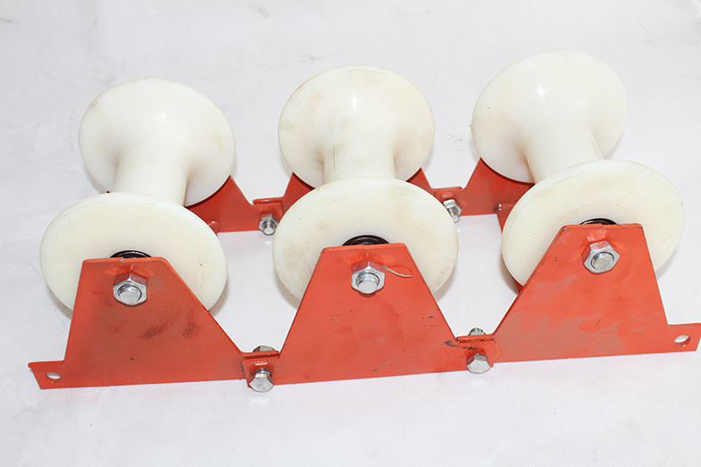 多聯式電纜滑輪用途:用于展放電力電纜用,主要用于井口保護牽引繩和電纜