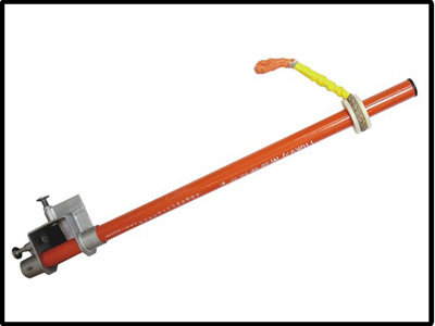 本產品針對110kv刀閘的通用安裝結構而設計,它用做110kv刀閘檢修專用防護架,檢修工人作業時隨身攜帶,將其卡緊在110kv刀閘的固定槽鋼上,作為安全帶固定點。采用本產品可摒棄將絕緣子作為安全帶固定點的習慣做法,消除安全隱患,避免事故發生。