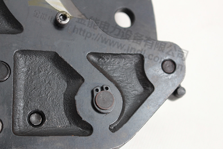 2,將動(dòng)手柄想下壓與止退扭碰撞,脫開(kāi)內(nèi)部各鎖緊機(jī)構(gòu),使動(dòng)刀片開(kāi)合自如。