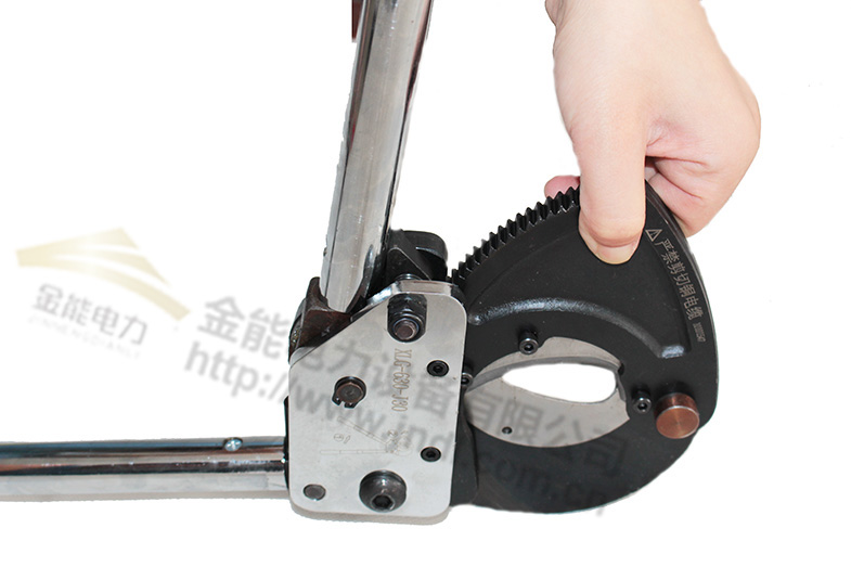 3,按照步驟2方法,打開(kāi)動(dòng)刀片,卡住電纜侯,合上動(dòng)刀片,連續(xù)往復(fù)抬壓動(dòng)手柄,直至電纜剪斷,